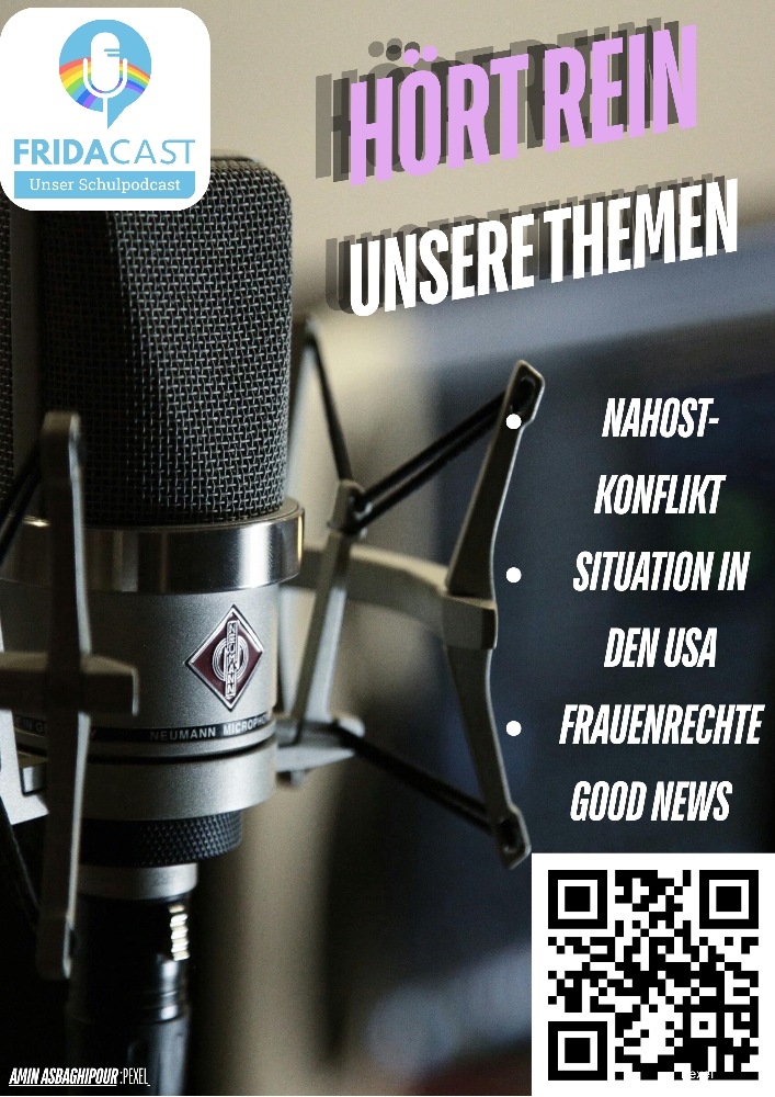 Wir haben eine neue Folge des Fridapodcasts mit genau diesen aktuellen Inhalten gemacht. Wenn ihr also etwas über den Israel Palästina Konflikt, die Situation in den USA, Frauenrechte und über Daily Good News efahren wollt, dann klickt hier auf der Schul-Homepage!