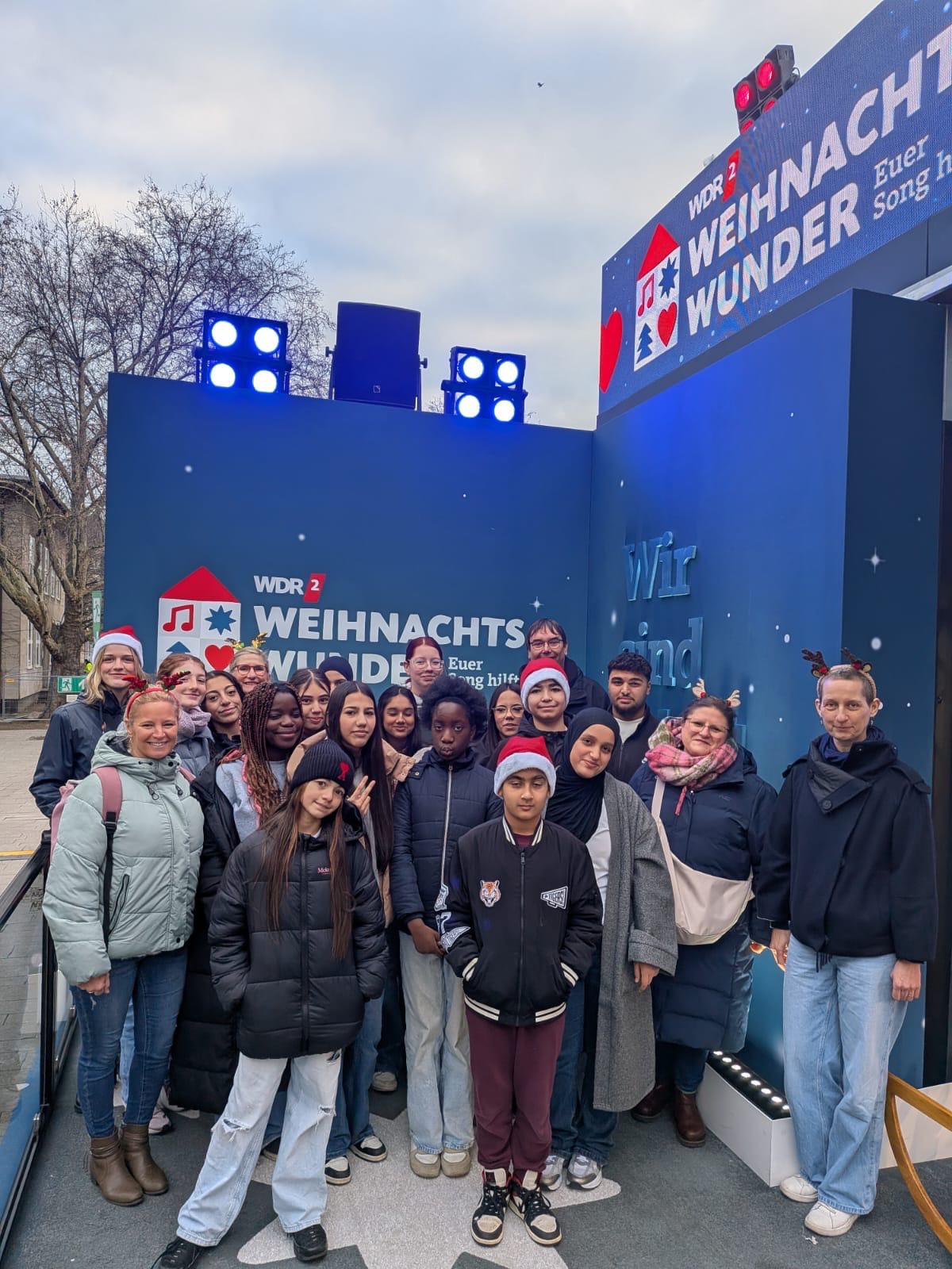 In der Vorweihnachtszeit hat unsere Schulgemeinschaft ein starkes Zeichen für Solidarität und soziales Engagement gesetzt: Durch zahlreiche Aktionen konnten über 1.000 Euro für das WDR 2 Weihnachtswunder gesammelt werden. Die Spende wurde persönlich am Glashaus auf dem Burgplatz in Essen übergeben.