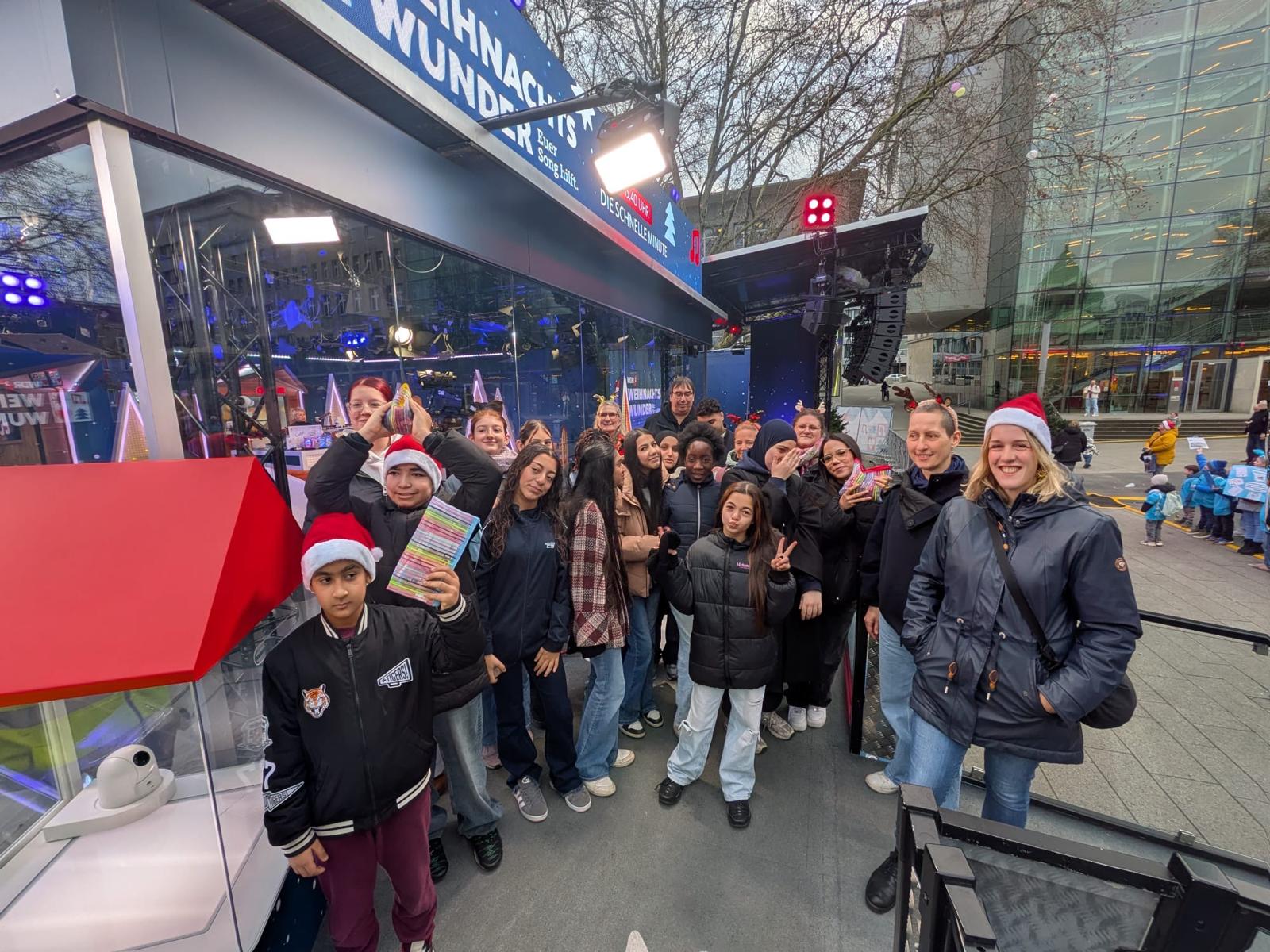 In der Vorweihnachtszeit hat unsere Schulgemeinschaft ein starkes Zeichen für Solidarität und soziales Engagement gesetzt: Durch zahlreiche Aktionen konnten über 1.000 Euro für das WDR 2 Weihnachtswunder gesammelt werden. Die Spende wurde persönlich am Glashaus auf dem Burgplatz in Essen übergeben.